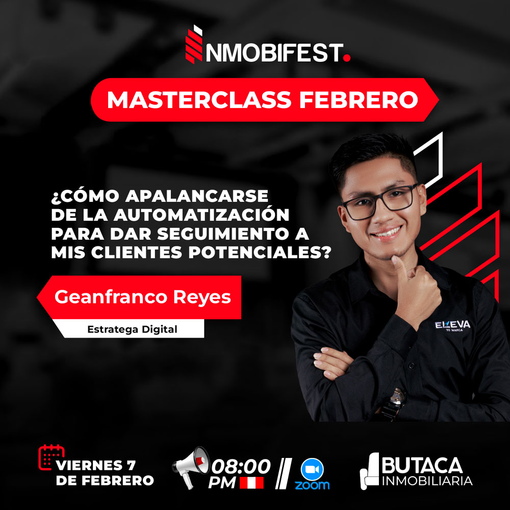 Durante los siguientes 3 meses, estaremos brindando sesiones de Masterclass junto a especialistas amigos que nos compartirán todos sus conocimientos para seguir desarrollándonos en el rubro inmobiliario.